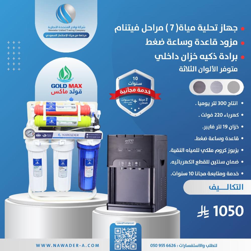 التعبئة: بدون قارورة يتم توصيلها من جهاز التحلية مباشرة .