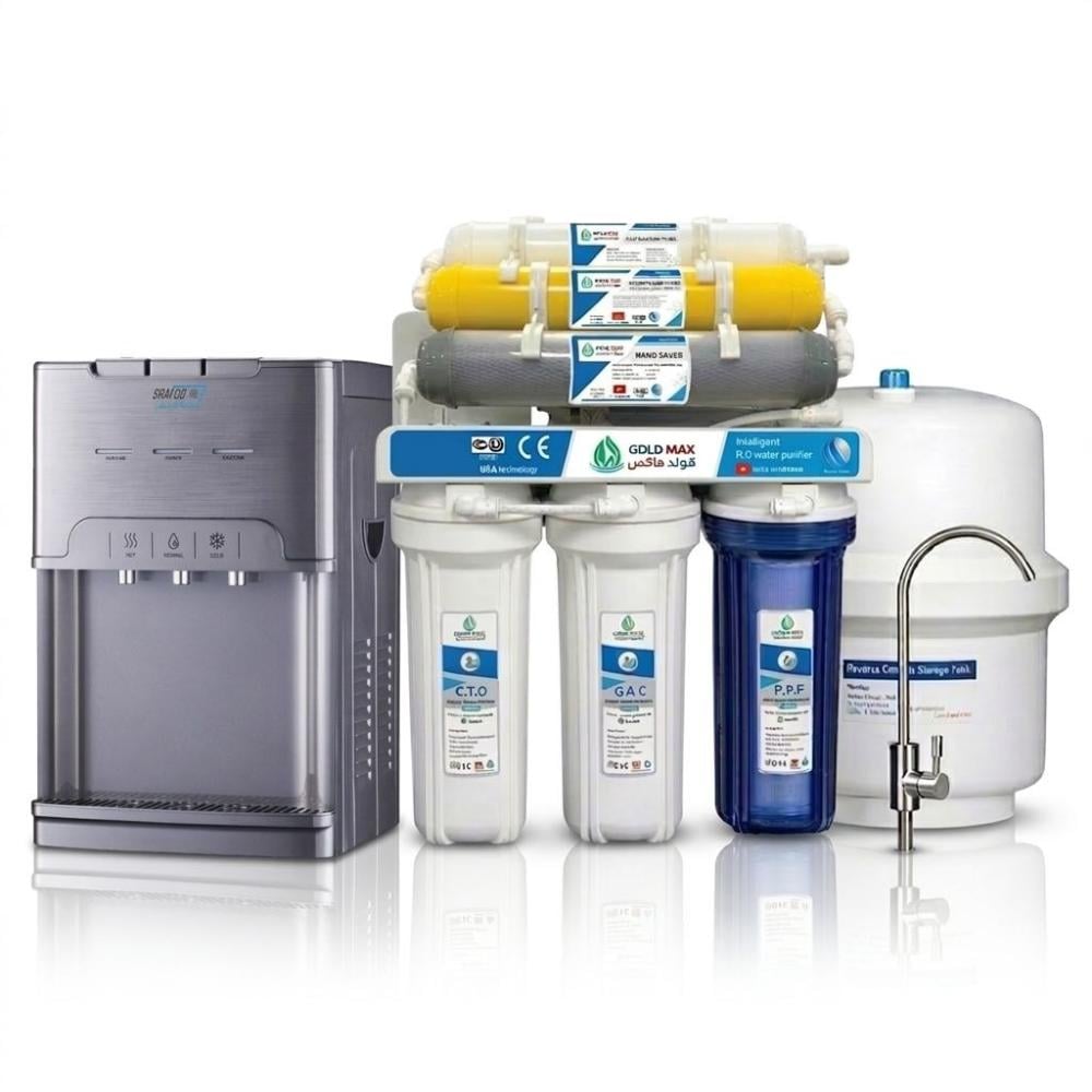 جهاز تحلية مياه 7 مراحل مع برادة ذكية – توفير وتحلية وتبريد في نظام واحد (متعدد الألوان)